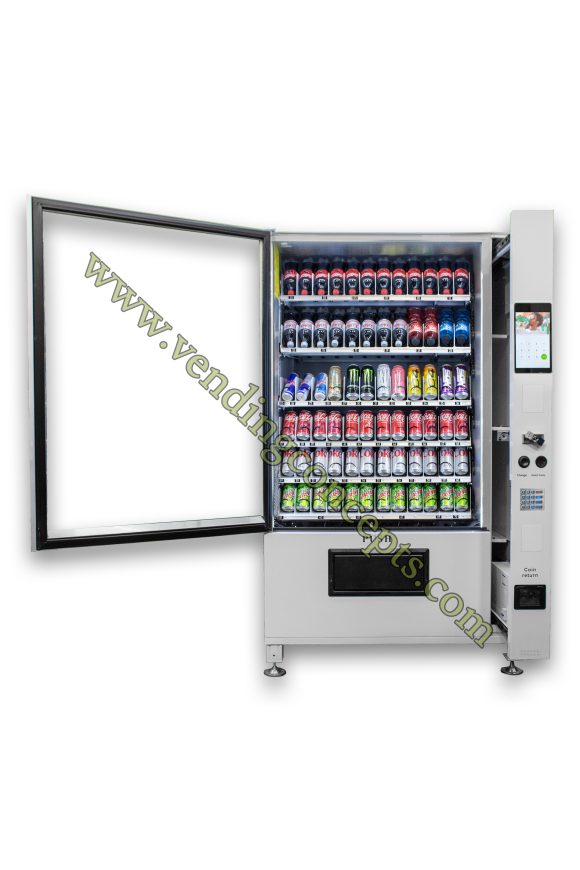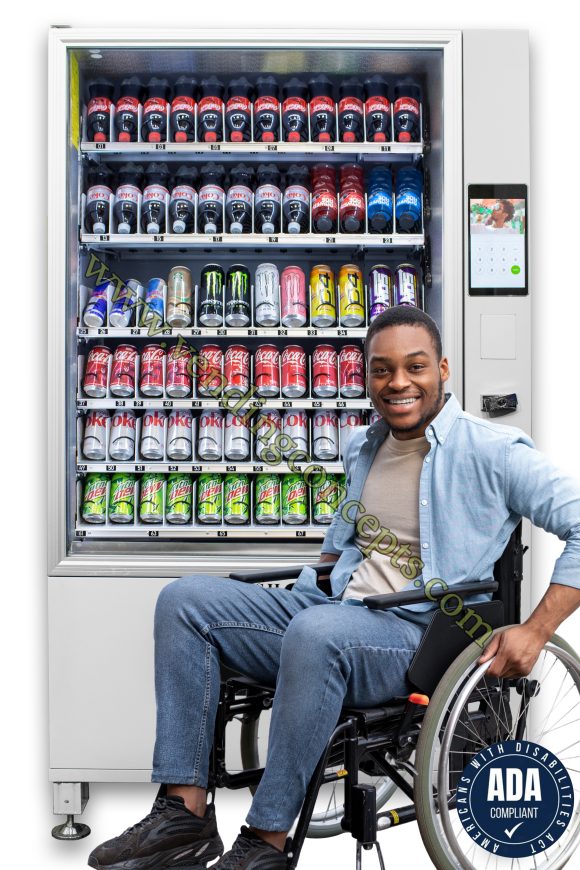 The VC 7212-10D ADA Compliant 6 Wide Glass Front Drink Machine is the total solution for today’s new world of technology! It comes with 6 shelves and a whopping 72 selections in our standard set. No other machine can match 72 selections!! The 10” Touch Screen allows the operator the ability to upload video and sell advertising for an additional revenue stream. No shims are needed to vend different size drinks!