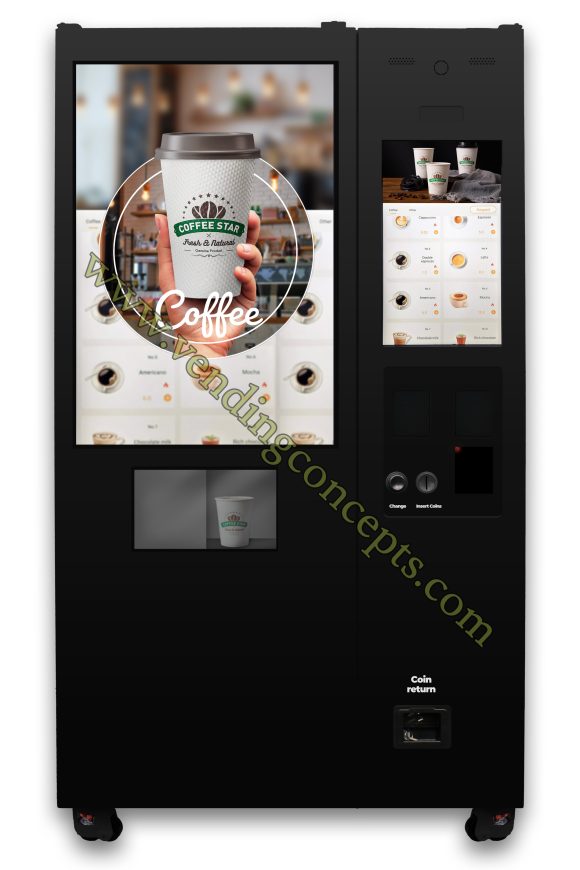 The VC CF8N-22 Bistro is equipped with a 22” touchscreen and serves the perfect cup of coffee. Powered by fresh whole beans and a Swiss made grinder, it brews a rich cup of coffee in no time just 25 seconds for instant hot beverages and 45 seconds for a freshly brewed espresso. Craft Iced Coffee drinks with the built-in, state of the art, ice maker!