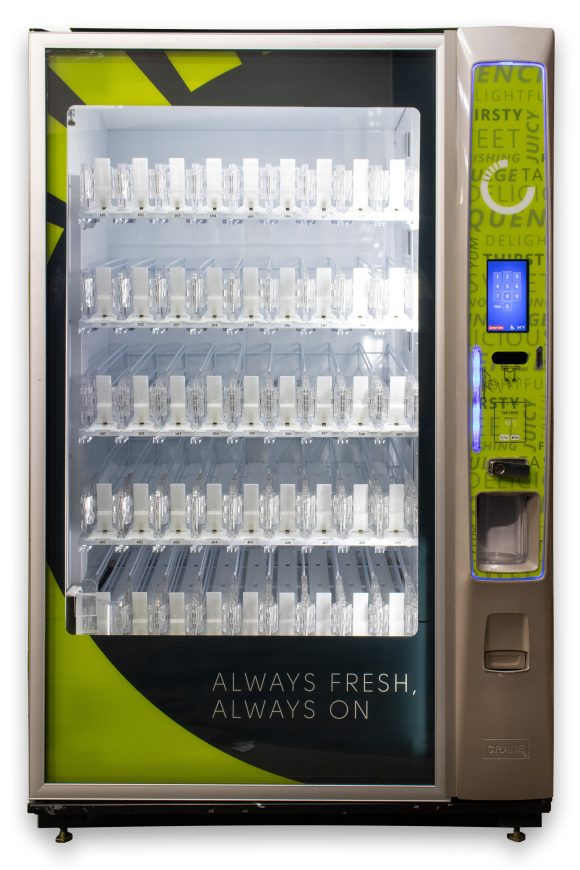 The Crane 5800-6 Media is one of the most reliable glass front drink machines available. In addition to its elite engineering, its sleek modern design is equipped with a 7″ touchscreen keypad that includes access to a shopping cart, which means your customers can buy multiple drinks in one transaction!