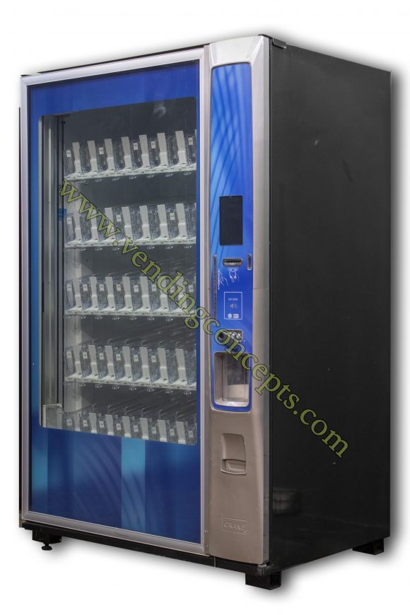 The Crane 5800-6 Media is one of the most reliable glass front drink machines available. In addition to its elite engineering, its sleek modern design is equipped with a 7″ touchscreen keypad that includes access to a shopping cart, which means your customers can buy multiple drinks in one transaction!