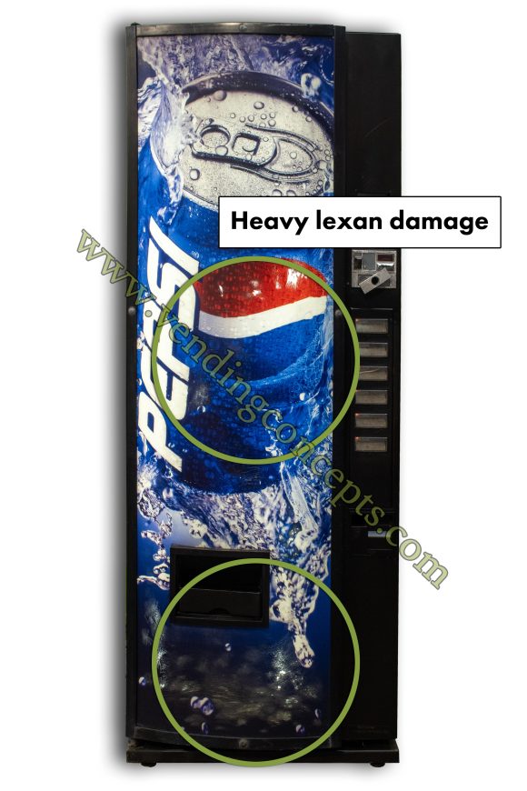 - As-is cosmetically, scratches, dent, cracks in drink graphic, etc. DOES NOT EFFECT FUNCTION OF THE MACHINE, PURELY COSMETIC DEFICIENCIES