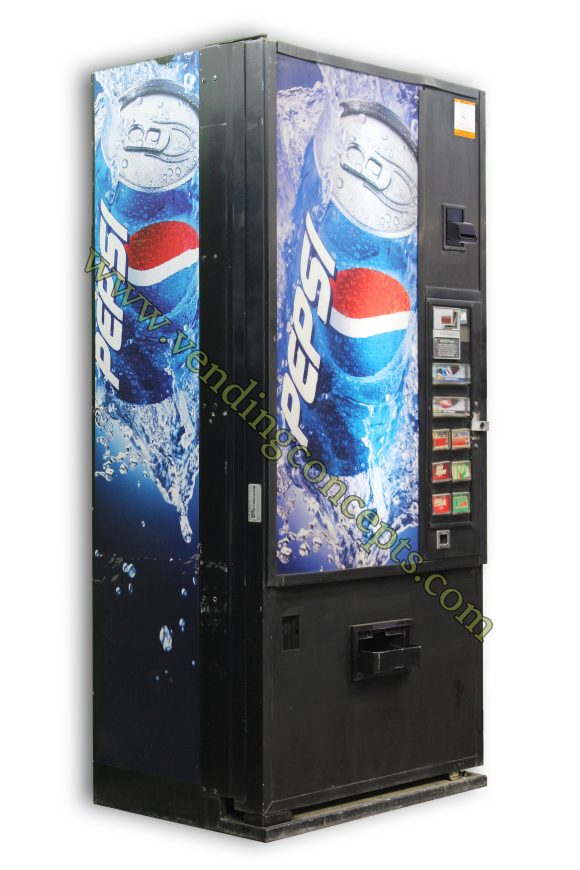 REDUCED PRICE — Heavy wear and tear. The Dixie Narco 440 drink machine will accept both cash and coins and offers 8 different drink selections. The price setting per selection will be the same for each selection so this machine is best set up for 12oz cans only. If you had the idea to make this the latest addition to your man cave or garage we could program it to “Free Vend” but it’s just as great of an option for selling drinks at your warehouse, repair shop, etc!!
