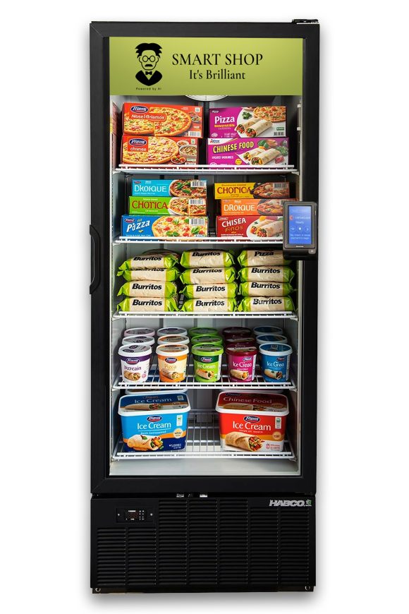 Introducing Smart Shop frozen food with AI technology! A breakthrough in unattended retail, powered by AI Vision cameras shrinkage…well it all but disappears. The Smart Shop frozen food will surely increase sales and profit margin by no longer limiting what can be sold to what fits in a vending machine.  It is the most secure automated retail system since vending machines were invented! No scanning or action from the consumer is required. Just pay, take and close the door and enjoy. REQUIRES INTERNET CONNECTION. (not included)