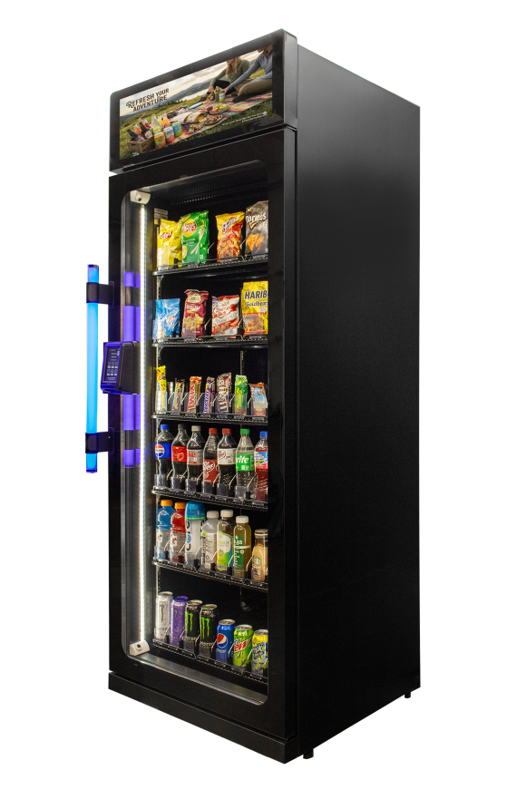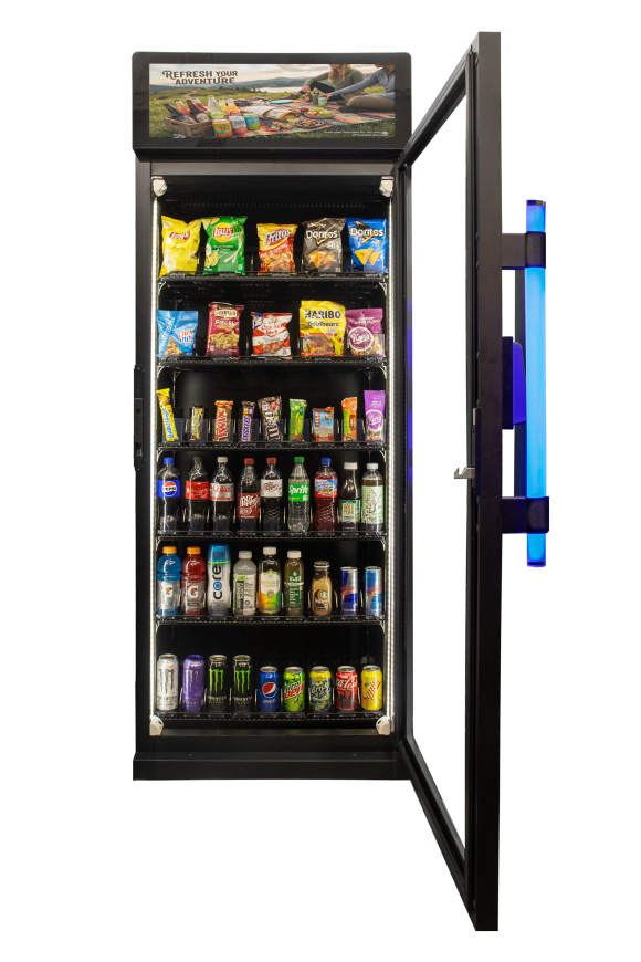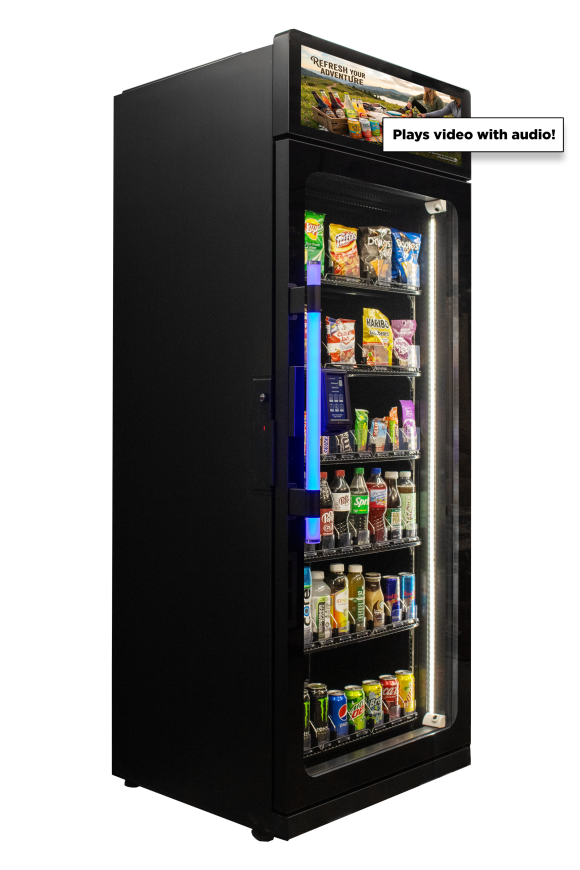 The VRK, with 4 vision cameras using AI technology allows you to sell what you want while shrinkage all but disappears. With built in product pushers included, you can sell food, drinks, snack or general merchandise that would not work in a traditional vending machine. No scanning or action from the consumer is required. Just pay, take and close the door and enjoy. REQUIRES INTERNET CONNECTION. (not included)