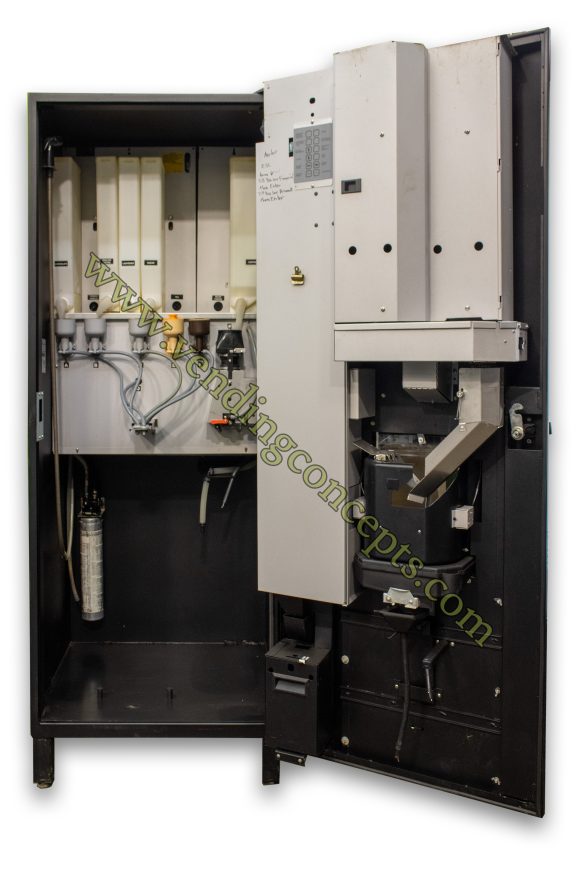 27.5″ wide x 28″ deep! The USI Geneva 3205 is a compact freeze-dried coffee vending machine with credit card compatibility. This machine sells regular coffee, specialty coffees, cappuccinos, hot chocolate, espresso & teas! The Geneva Coffee features a European-designed, state-of-the-art brewing system and filter system for precise ingredient controls to ensure a high-quality cup with superb taste, aroma, color, and appearance is delivered each and every time. Being compact in size, the USI Geneva 3205 will be a perfect fit for most locations that want to offer their associates or customers fresh coffee!