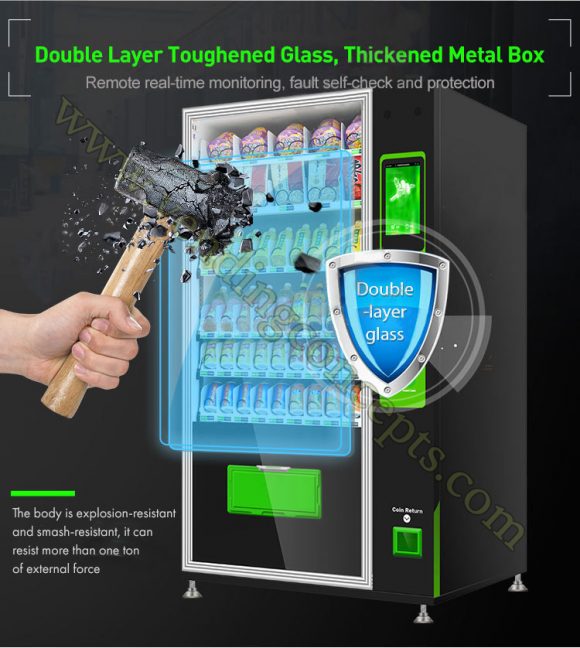 Groundbreaking new technology!  The glass merchandising door is double layered and is electrically heated to ensure that the glass does not fog up & it eliminates condensation. The body is explosion resistant and smash-resistant and can resist up to one ton of external force!  The VC-7206-10D ADA glass front drink machine is modular so the shelves can be altered to have larger or smaller sizes(custom charges will apply). This machine has a special refrigeration system that both cools & heats! The cabinet temperature ranges from 39 degrees to 77 degrees. The standard configuration using traditional spirals can be changed out for a conveyor system (extra costs apply) to accommodate odd sized products which adds great flexibility to what kind of products the machine can vend.  It comes a secure - lockable cash box, a guaranteed vend system (holds credit until product is dispensed) as well as LED lighting.