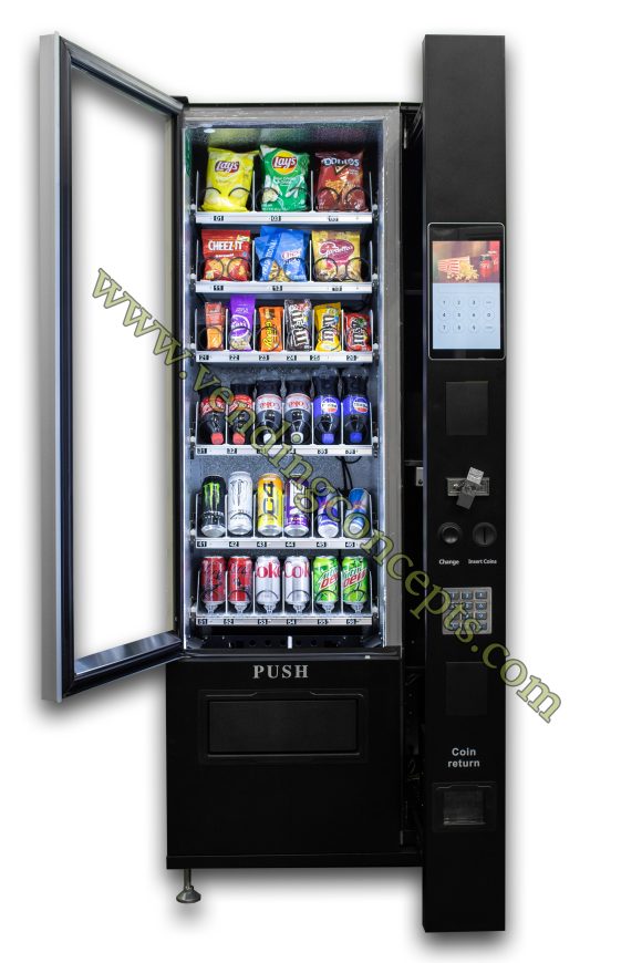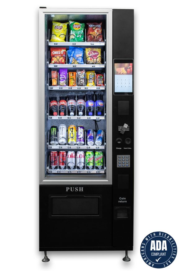 Introducing the new tablet powered VC 7206-10C ADA compliant Slim-Max combination vending machine! Sell advertising, upload videos, offer promotions with the 10” tablet & displace your competitors by offering these superior benefits to facility managers. With the tablet and flexibility to sell specialty beverages (coffee, Redbull etc) and food or snacks, or even sell non-traditional vending products, ROI will far exceed the old industry standards! It is perfect for tight spaces or add it to a bank of equipment! The width is less than 29”, boasting 6 customizable shelves and a fully refrigerated cabinet!