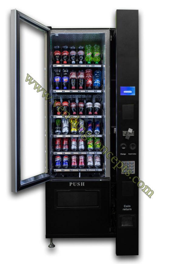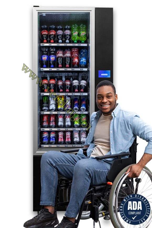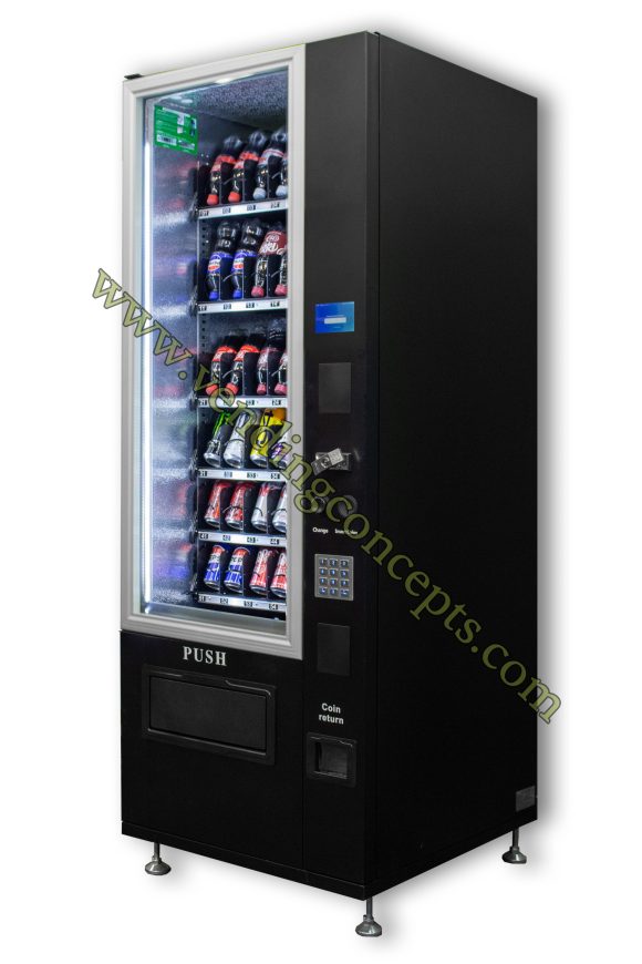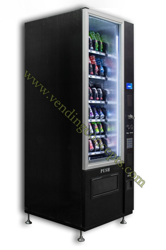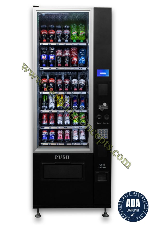 Introducing the VC 7206-5D ADA compliant Slim-Max Glass front Drink vending machine! With the flexibility to sell specialty beverages (coffee, Redbull etc) and various container sizes, all without the use of shims! ROI will far exceed the old industry standards! It is perfect for tight spaces or add it to a bank of equipment! The width is less than 29”, boasting 6 customizable shelves and a fully refrigerated cabinet!