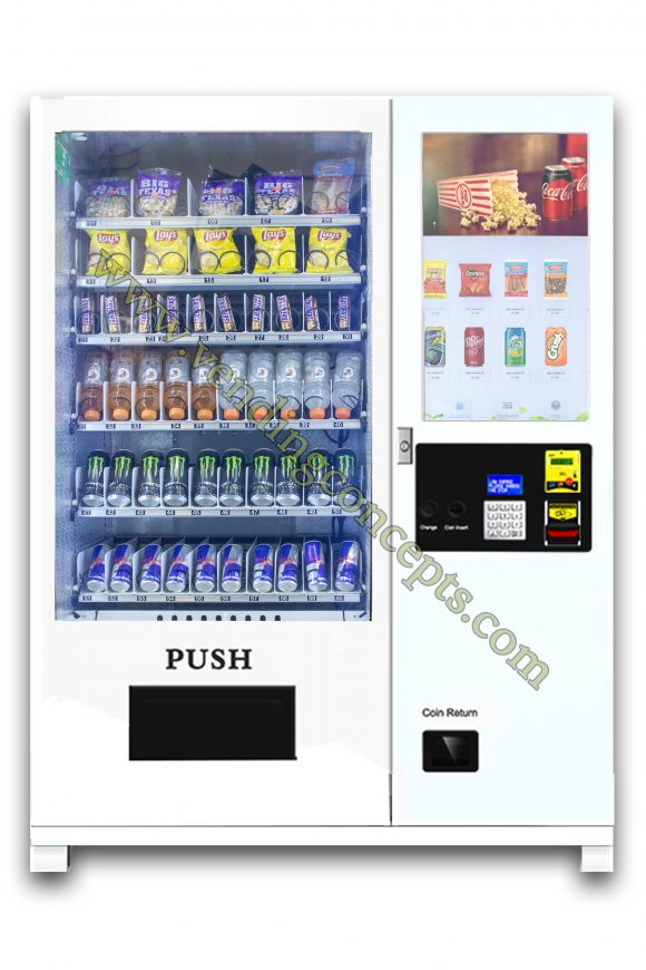 The VC-7210-32C ULTRA Capacity combination vending machine merchandiser is the total solution for today’s new world of technology! It has Maximum Capacity for variety with 50 selections in our standard configuration! It has a huge side pantry where you can store product for quick and easy reloading!