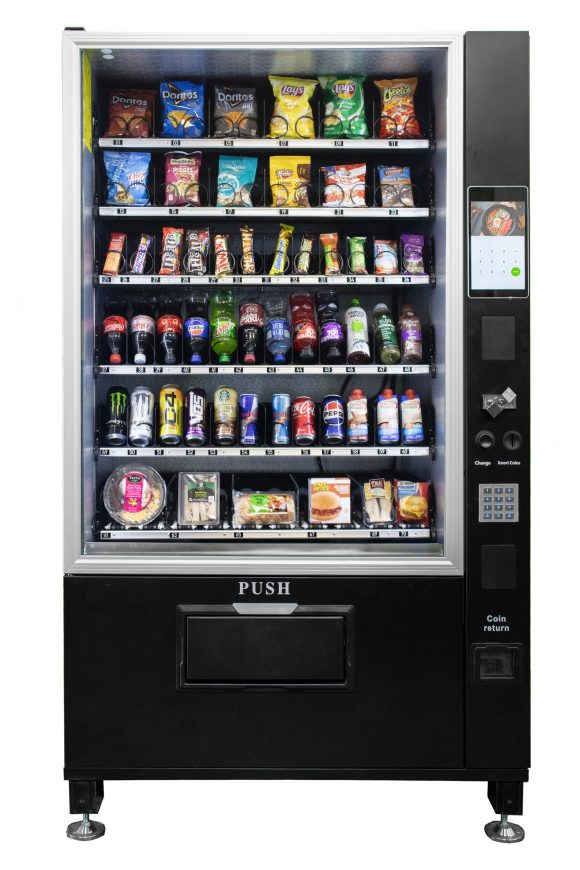The VC 7212-10C ADA Compliant 6 Wide Combination Vending Machine is the total solution for today’s new world of technology! It can vend drinks, snacks, food or any combination of the three and do it without shims!! It comes with 6 shelves (one converyor belt shelf, 5 traditional spiral shelves) in our standard set! Boasting 24 drinks, 12 chip/pastry, 12 candy and 6+ flex items (food or snack) for a total of 54 selections! The 10” Touch Screen allows the operator the ability to upload video and sell advertising for an additional revenue stream.