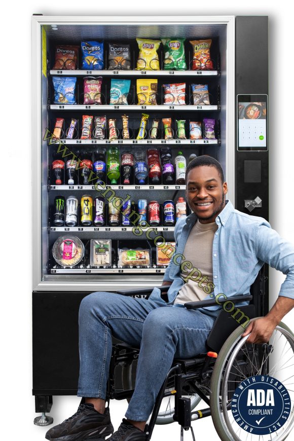 The VC 7212-10C ADA Compliant 6 wide Combination Vending Machine has not only the greatest available technology but it is so well built with special features such  The user can use the shopping cart feature to make multiple purchases creating more revenue!   Groundbreaking new technology!  The glass merchandising door is double layered and is electrically heated to ensure that the glass does not fog up & it eliminates condensation. The body is explosion resistant and smash-resistant and can resist up to one ton of external force!   It is factory equipped with a backend management software. You can track sales & inventory, run reports, get alerts if your machine has a malfunction, etc. This machine can interface with all the latest payment platforms such as Grab Pay, Touch N Go, Boost, Maybank, QQR, Paywave, Payrange, Google Pay, Apple Pay and more.