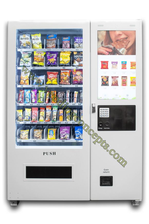 The VC 8010-32S Versi Flex is the best choice to maximize revenue streams for the least amount of investment. The cabinet is ambient so if you want to sell goods that don’t need to be refrigerated, this is the vendor for you! With the Fastest ROI of all the flex machines.  Advertise your specialty products with a huge 32” LED touch screen or sell advertising for additional revenues!