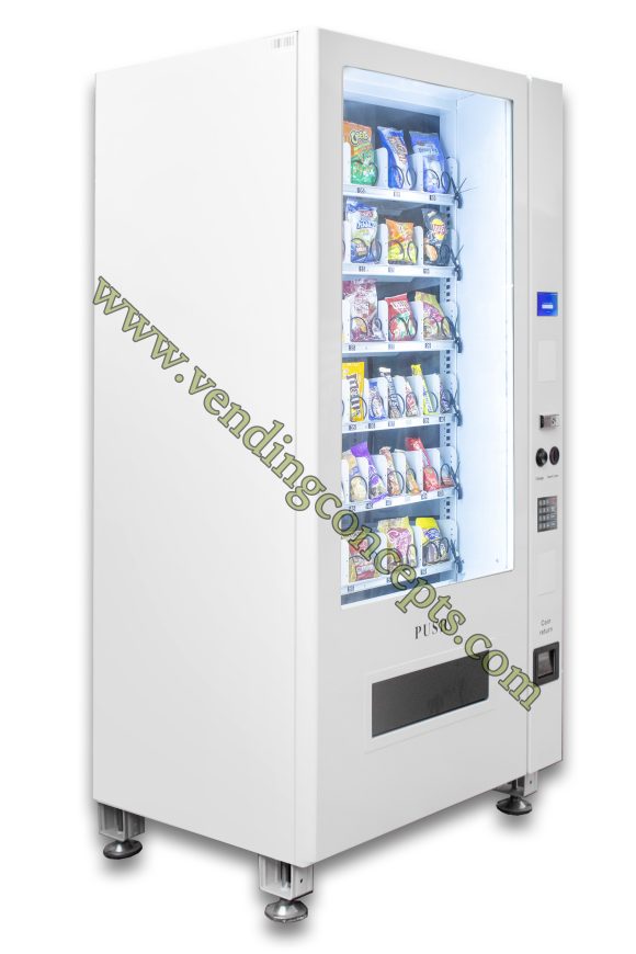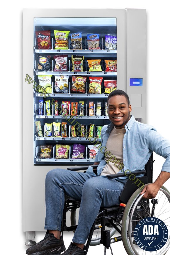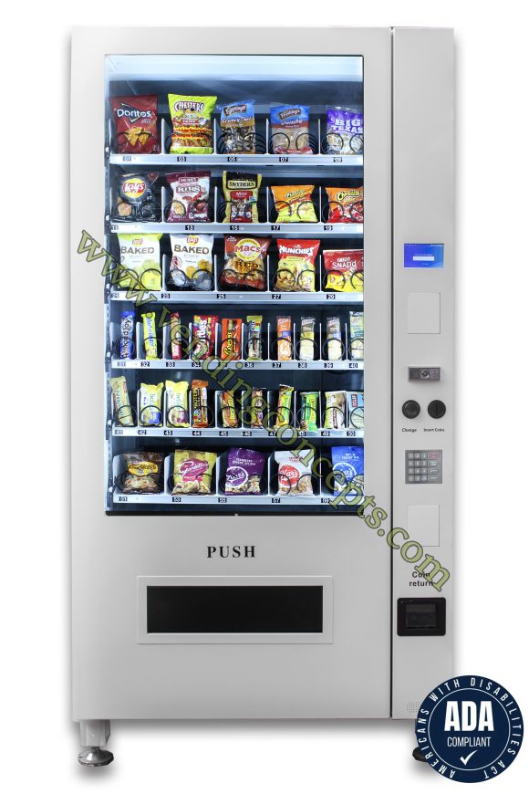 The VC 8010-5S ADA (American Disabilities Act) full size snack machine comes standard with 20 chips / pastry selections and 20 candy selections for a total of 40 selections! It is fully customizable and can also use conveyor belts instead of spirals. It has vend sensors, LED lighting and a modern design…your best choice to maximize revenue streams for the least amount of investment.