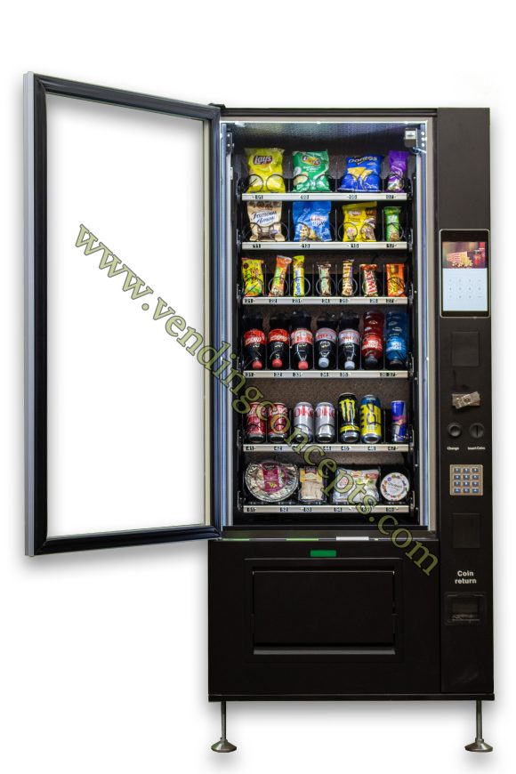 The VC 9007-10C ADA Compliant Mini Flex glass Combination machine, comes standard with 6 full shelves (5 Spirals, 1 Conveyor Belt) with up 21 drink selections / 15 snack or food selections & a 10” Touch Screen in our standard set. The Super Flex combo machine has an industry-leading elevator system, giving flexibility to sell fragile glass drinks and carbonated cans, fragile food items…it can do it all! Red Bull, salads, 10 oz juices, 20 oz, 24 oz Gatorade!
