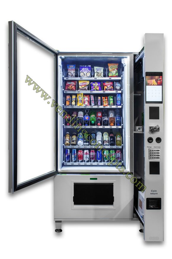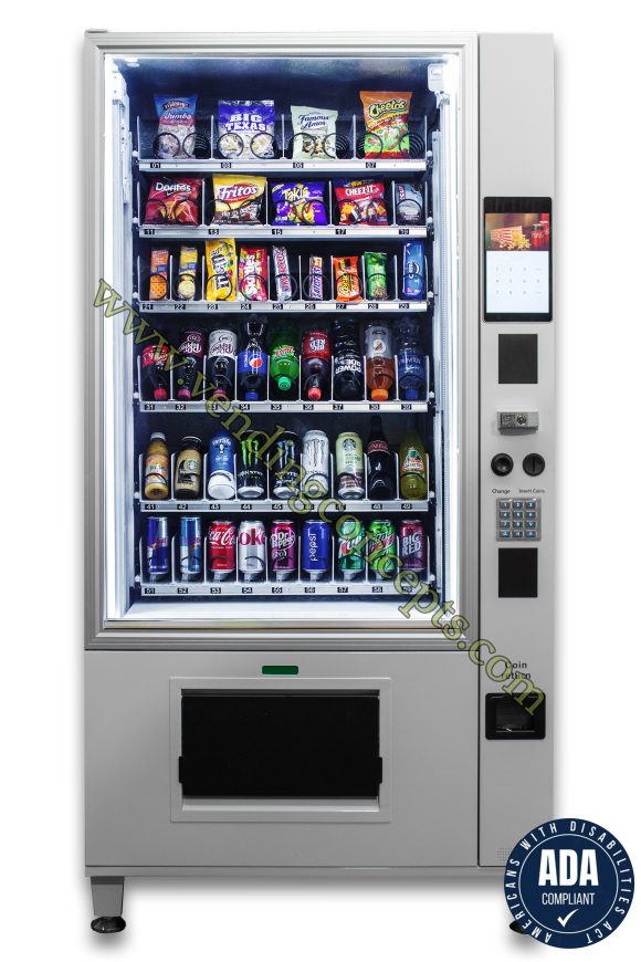 Step into the future with the new tablet powered VC 9009-10C Super Flex combination vending machine! Sell advertising, upload videos, offer promotions, use the new features to upgrade your best customers or better yet, displace your competitors by offering these superior benefits to facility managers. The VC 9009-10C Super Flex combination vending machine merchandiser, comes standard with 6 full shelves & a 10” Touch Screen. The Super Flex combin