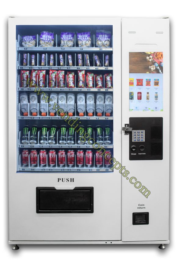 The VC EL10-22C MAX CAPACITY vending machine merchandiser is the total solution for today’s new world of technology! Maximum Flexibility to sell non-traditional vending items. It has an intelligent elevator system that gives the operator the opportunity to sell fragile products, perfect for salads, cosmetics, CBD/Vape products, even electronics!