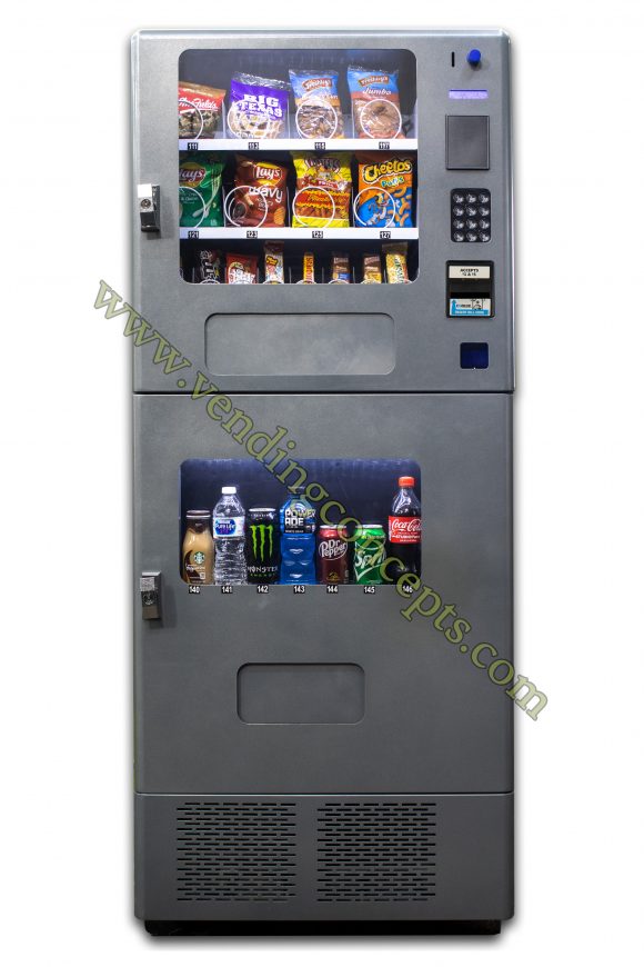 At 30″ wide & 29″ deep, the VC JDL 2C Classic Edition is designed to serve locations with limits on space – but don’t let its size fool you, it still packs a punch! You’ll have the option to sell sodas, energy drinks, bottled water, and 20oz bottles like Gatorades; additionally, it offers 8 larger chip/pastry selections and 8 smaller snack selections – like candies and granola bars. The VC JDL 2C can be fashioned with a credit card reader providing additional payment options like Apple Pay, Google Pay, and more!