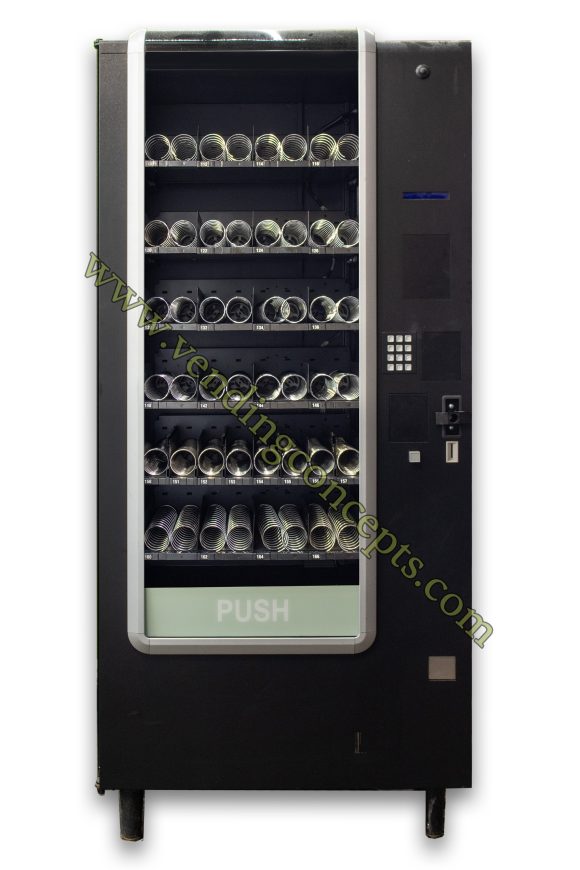 At 30″ deep, the VE Curved Door vending machine is ideal for areas with limited space such as hallways. This machine is widely considered the most reliable snack machine made — it’s very durable and built to last!