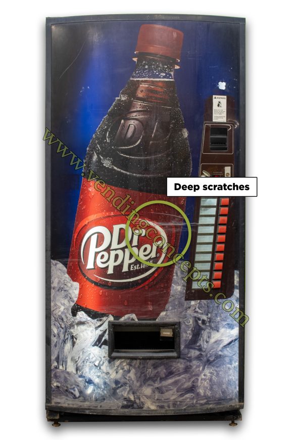 REDUCED PRICE — Deep scratches. The Vendo 821 drink machine has credit card reader compatibility, and is the perfect machine for high-volume locations. It offers 10 selections and holds approximately 800 12 oz drinks or 340 bottles. Each of the drink selections are able to be individually priced and programmed, you can sell anything from 12 oz cans through 20 oz bottles without an issue! The Vendo 821 is a great fit for highly populated areas like warehouses, cafeterias, shopping malls, airports, hotels, the DMV, etc.!